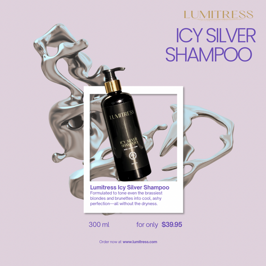 LUMITRESS™ Icy Silver Toning Shampoo is a salon-grade formula designed to tone even the brassiest blondes and brunettes into cool, ashy perfection—all without the dryness. Unlike traditional purple shampoos that strip moisture, this powerhouse is infused with hydrating oils and backed by science, delivering deep toning results while nourishing every strand.